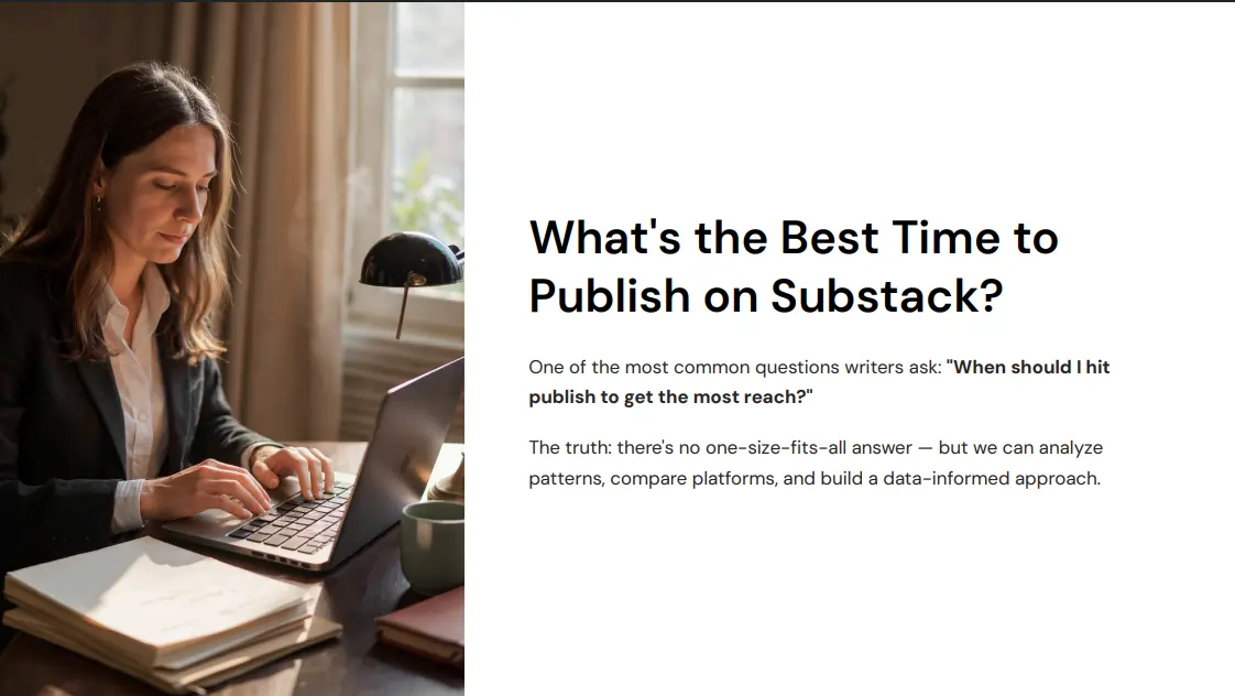 This exclusive guide breaks down reader behavior, open-rate trends, and posting insights gathered from top-performing Substacks — helping you identify the perfect publishing schedule to boost engagement and grow your audience faster.